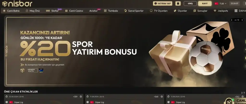Site oyun alanları haricinde Nisbar bonusları üyelerin çok avantajlı oyunları oynamasındaki yardımcısı olarak geçecektir. Bonus seçenekleri ve promosyonlara yönelik olan artışlar üyeleri de memnun edebilmektedir. Eğer sizler de casino ve spor bahislerini tekil düzeyde değil de avantajlı olan düzeyde değerlendirmek isterseniz aşağıda bulunan kampanyaların tamamına kurallarını uygulayarak katılabilirsiniz.